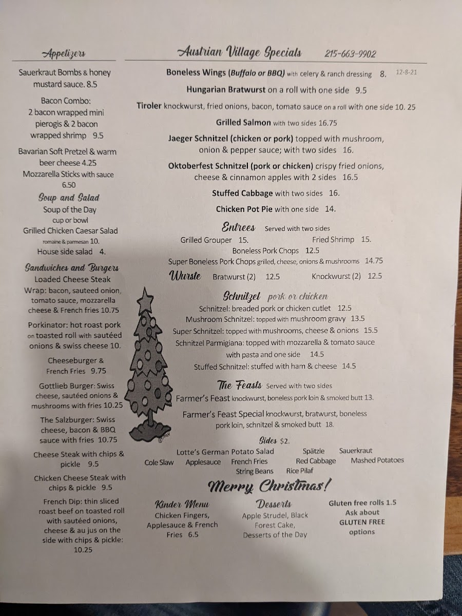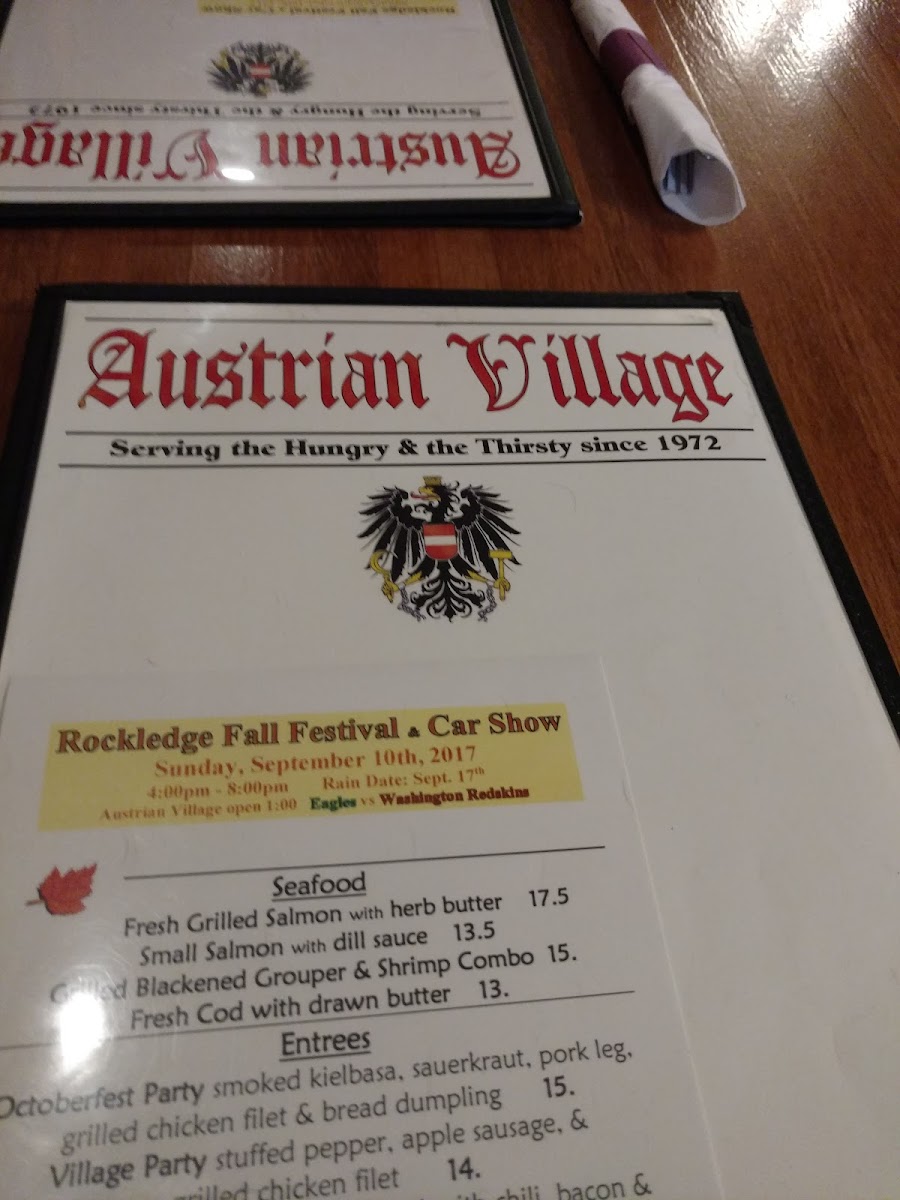 Austrian Village Bar & Restaurant Menu